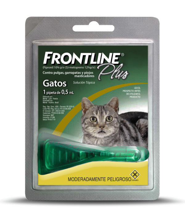 Gracias a su exclusiva formulación con el agregado de Metopreno, brinda protección continua, con doble acción sobre pulgas y sobre estadios inmaduros de pulgas (huevos y larvas) presentes en el medio ambiente. FRONTLINE® Plus también elimina garrapatas.